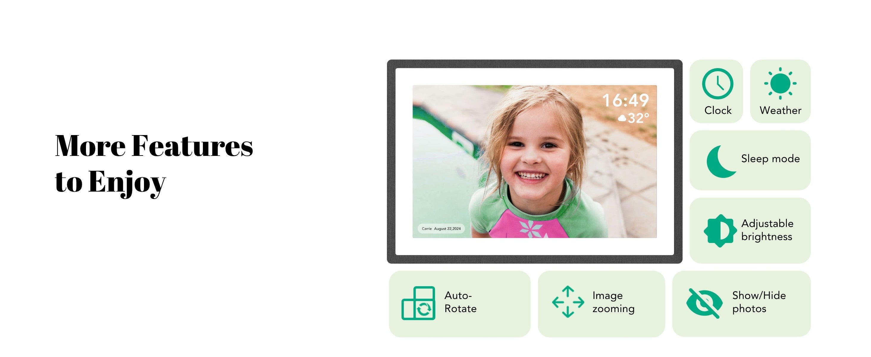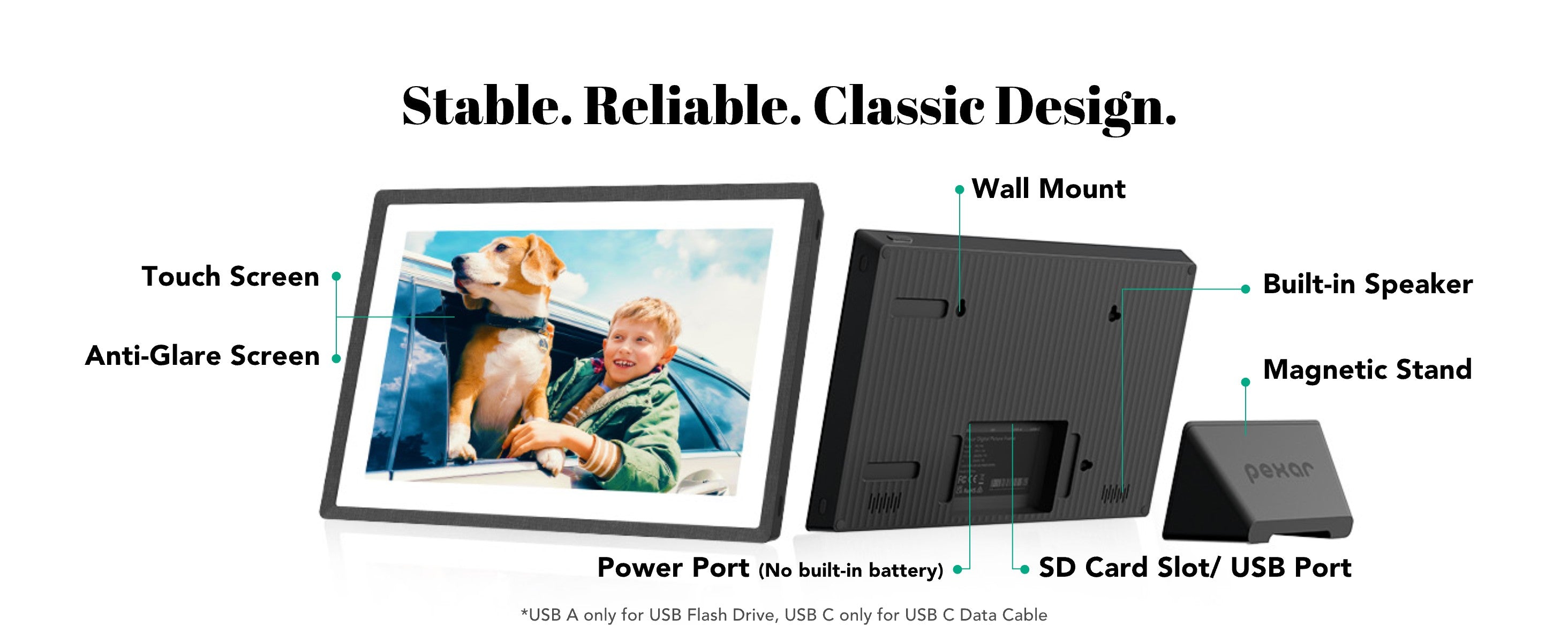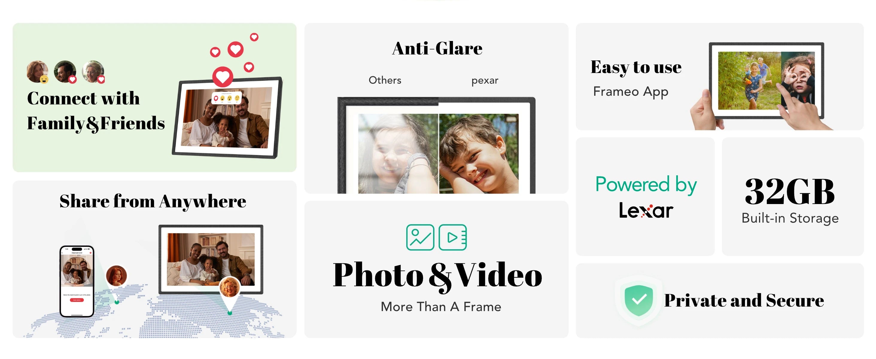 The pexar digital picture frame, is user-friendly to all and makes an ideal gift for sharing photos and videos from anywhere. Powered by Lexar, a brand you know you can rely on.